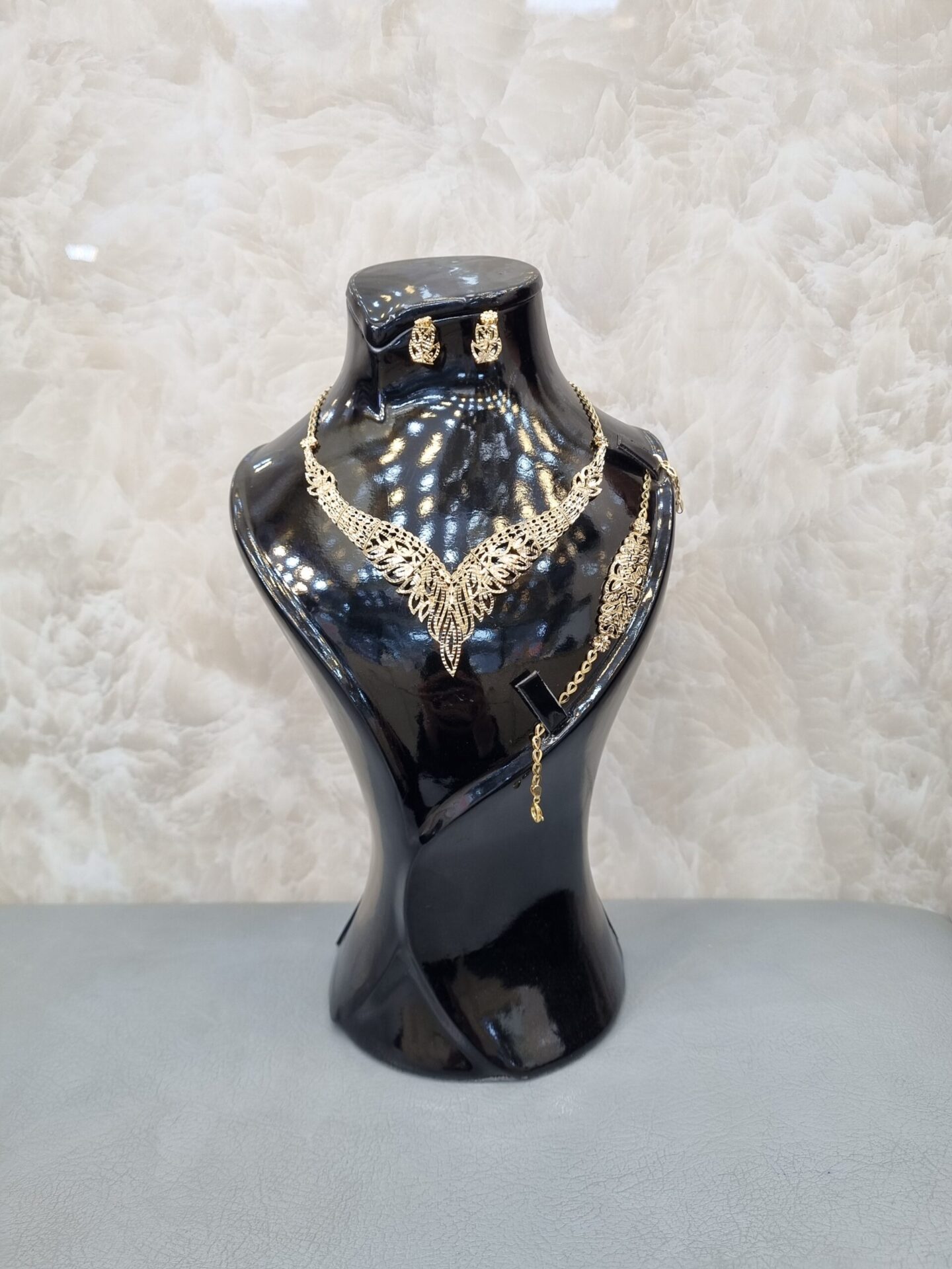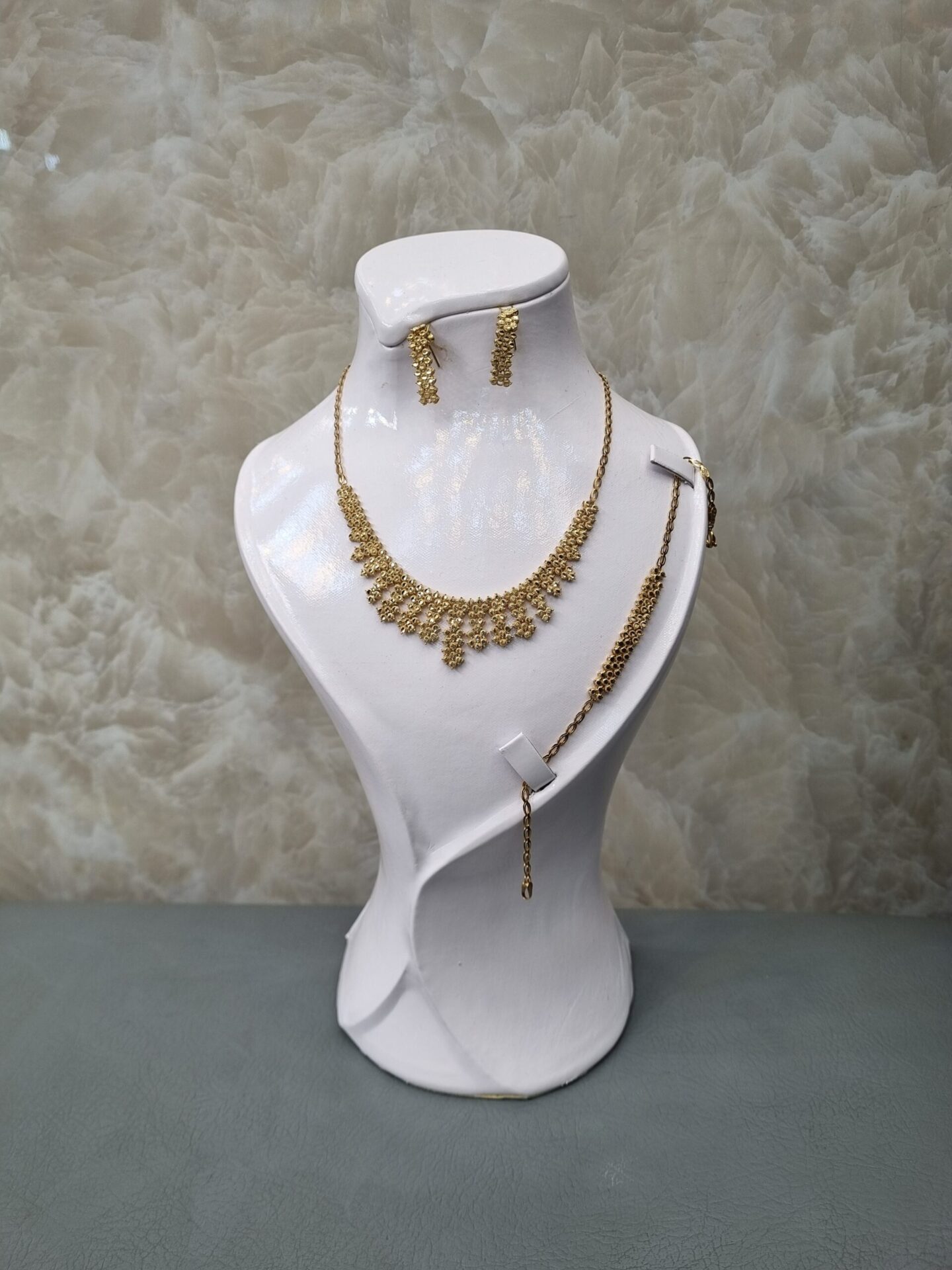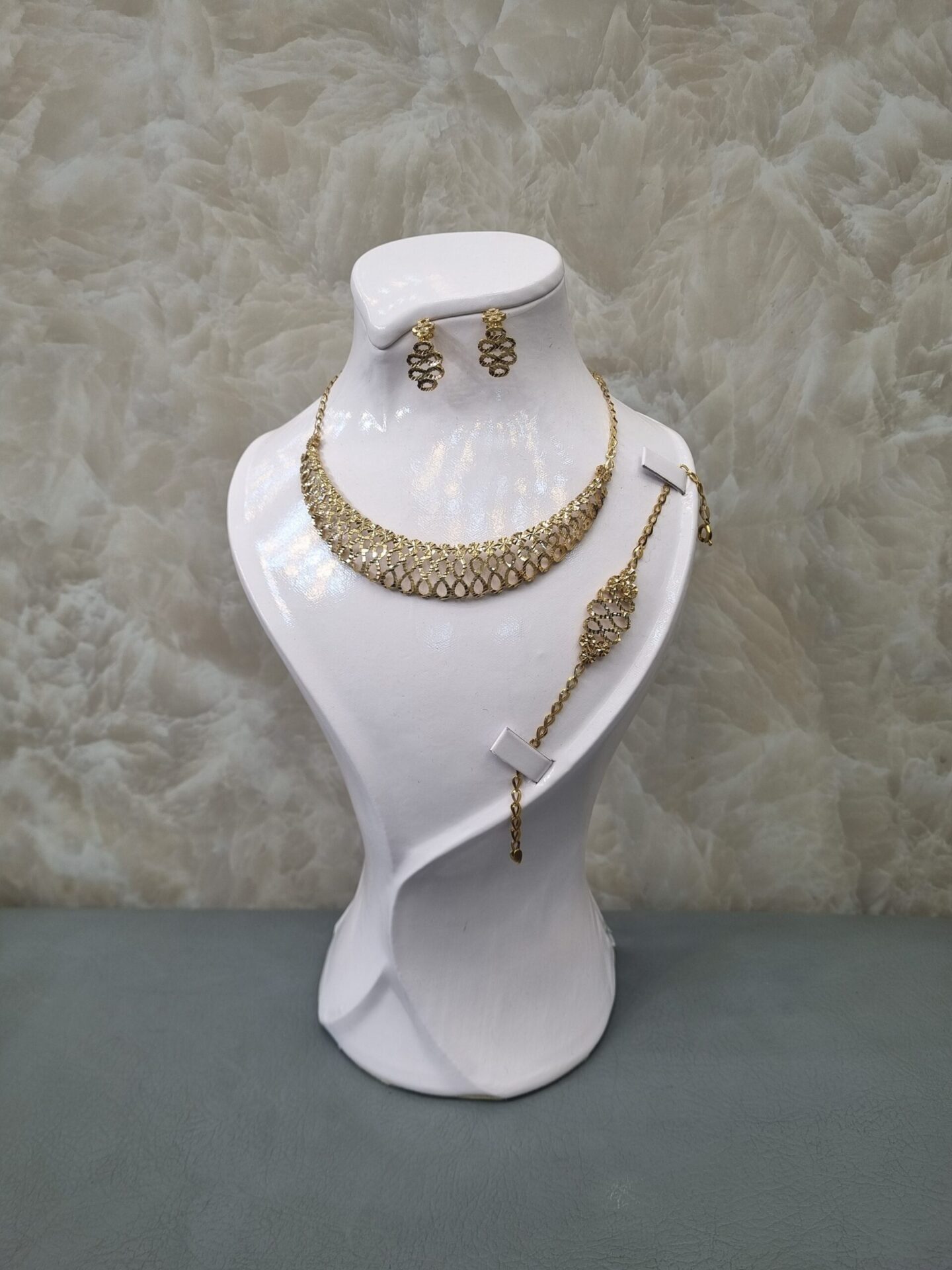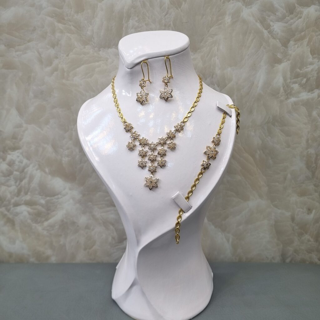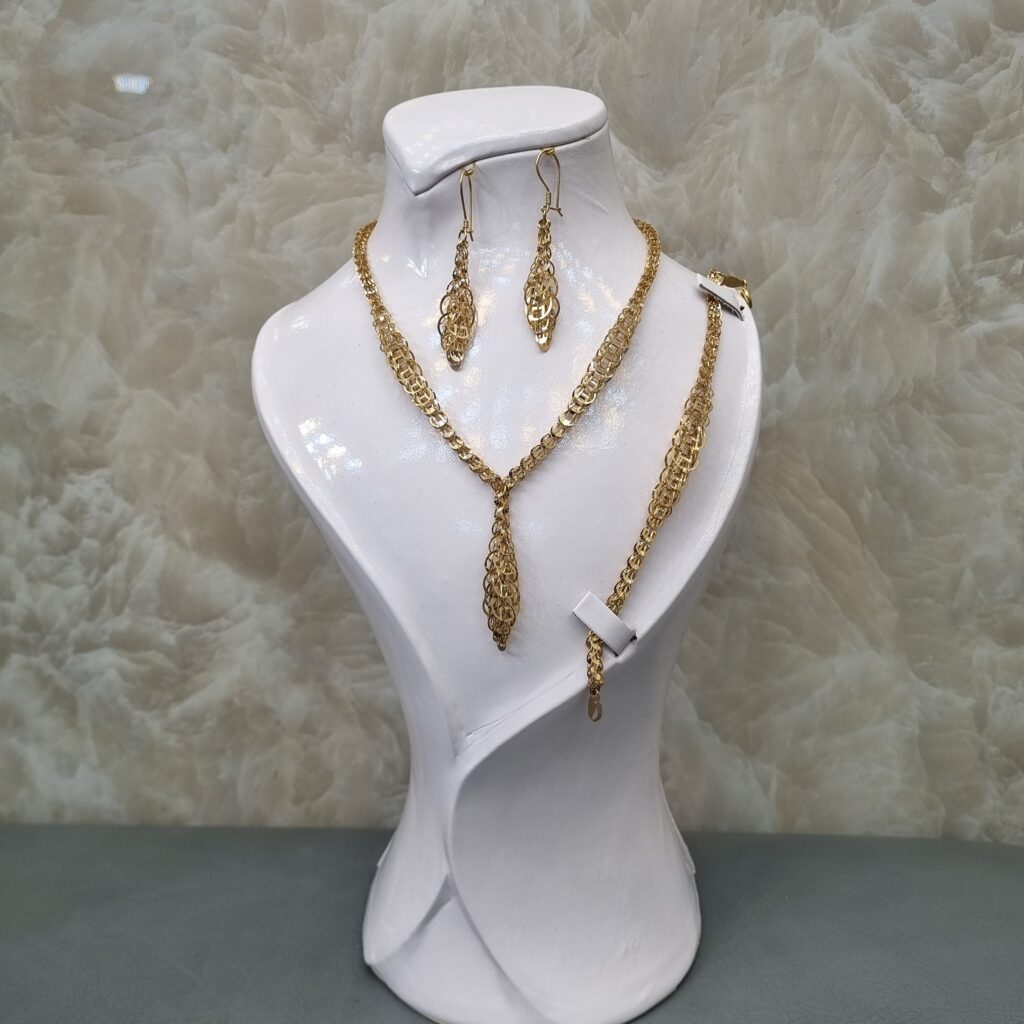 نیمست طلا شامل گردنبند و گوشواره است و در برخی مدلها دستبند هم دارد. این محصول سبکتر از سرویس کامل بوده و برای استفاده روزمره یا مهمانیهای دوستانه بسیار مناسب است.