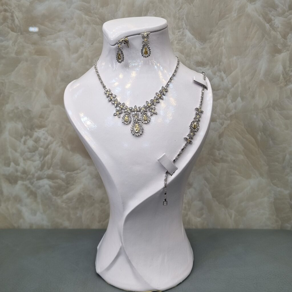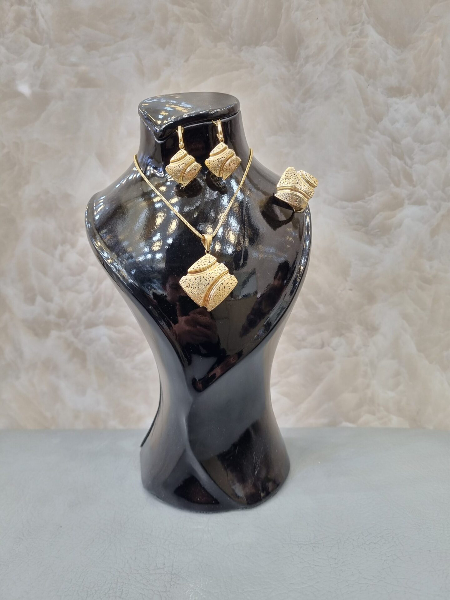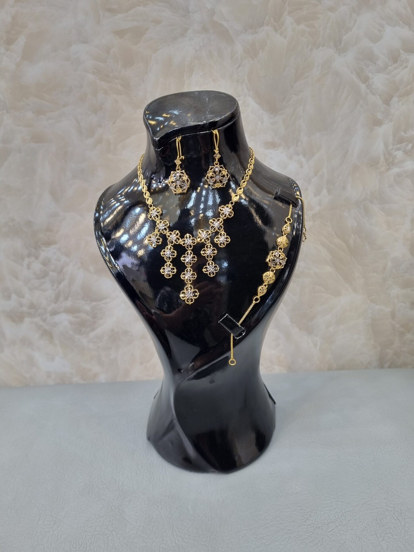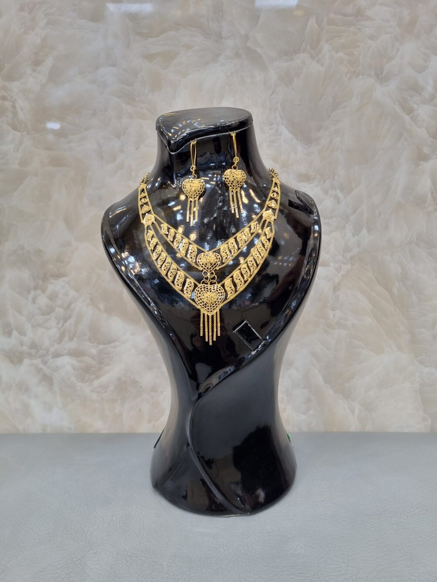 نیمست طلا شامل گردنبند و گوشواره است و در برخی مدلها دستبند هم دارد. این محصول سبکتر از سرویس کامل بوده و برای استفاده روزمره یا مهمانیهای دوستانه بسیار مناسب است.